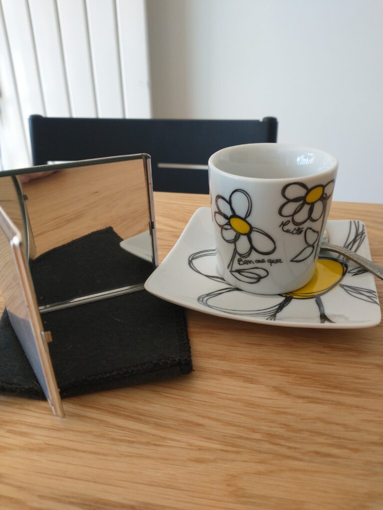 With this, my last photo, I’m going to tease you by not sharing the text (you’ll find it on page 161). I will say that the mirror shown is a typical part of my travel gear, as important as my portable altar. With my usual focus on practicality, this mirror helps me look good and offers powerful protection against any ill will coming at me.