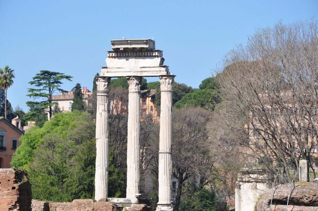 Obviously the image in the text was edited to be more focused on the temple remains. And here is where I confess that the Temple is not that of Vesta, but Castor and Pollux, the Dioscuri, twin sons, of Leda. I never was able to take a good picture of Vesta’s Temple (over two visits). This site has great information and truly gorgeous (professional) photos.